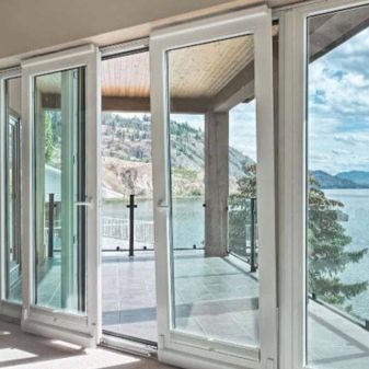 The design provides for a double-glazed window for one or two chambers. Glasses keep warm during frosts, but do not allow direct sunlight to pass through during hot summers. Thanks to the sliding doors, the rooms will have a pleasant microclimate both in winter and in summer.