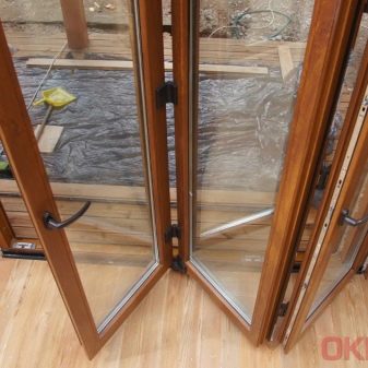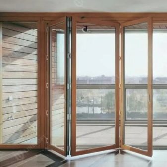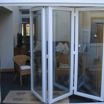 The main drawback of the design is that each sash is made of its own profile, through which daylight cannot penetrate. Doors of this configuration are very often made of plastic. However, you can find designs of "accordion" made of wood or aluminum.