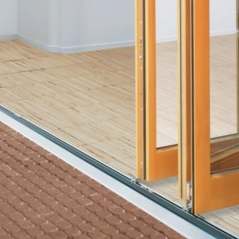 Warm configuration doors cope better with extreme cold. Such structures not only keep warm, but also protect the balcony from precipitation, street dust and strong winds. The balcony will be warm even in winter, the cold will not penetrate into the living space. The doors will maintain a high temperature in the house, even if the balcony space is not glazed.