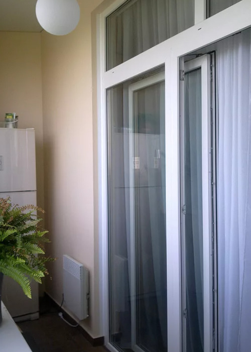 If repairs begin, you can easily remove the furniture to the balcony without damaging it. In addition, a beautiful view opens from the portal doors.
