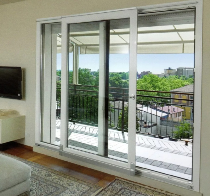 Another distinctive feature of sliding models is the ability to create a wide aisle on the balcony. Doors of this configuration can open wide, it is more convenient to enter through a large passage, you can easily bring large furniture onto the balcony. Many models have locks that cannot be opened from the outside. Such a door block is completely safe for babies: children will not be able to pinch their hand or get any other injury.