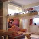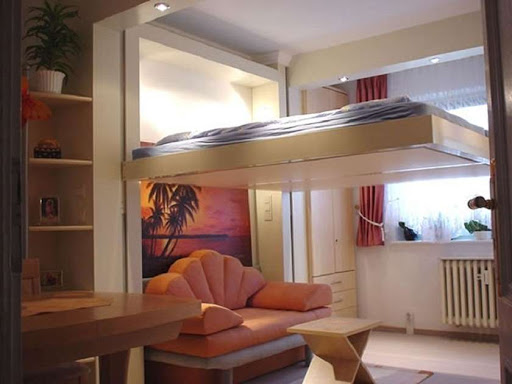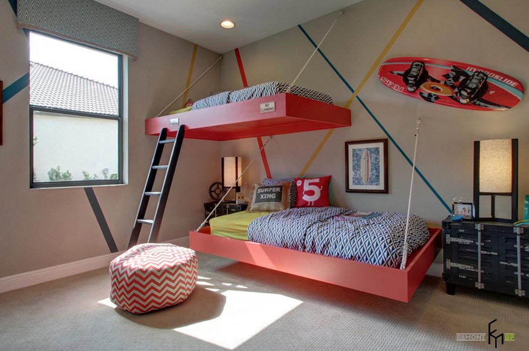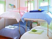 - A lifting model is suitable for small cramped bedrooms, which, with the help of a mechanism, lowers the structure during sleep and lifts it to the ceiling during the day.... The bed is fixed on the ropes.