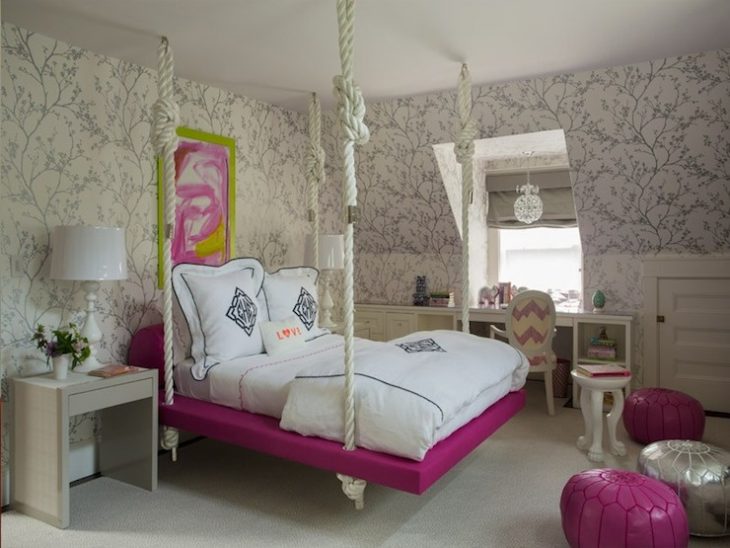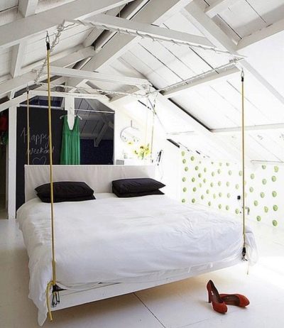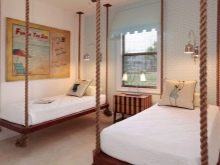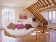 Hanging beds are sleeping place, suspended from the ceiling or fixed to the wall by the headboard. Such models do not rest on the floor, leaving it free and untouched. You can install a similar structure in the bedroom, children's room, in the attic, veranda, even on the street under a stable awning. Teenagers love to sleep under the ceiling and are happy to introduce a hanging bed into the interior of their room in an ordinary city apartment.