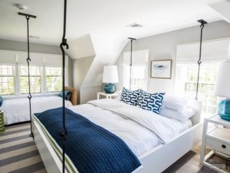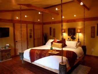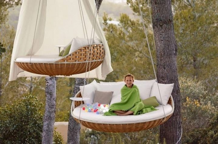By purpose, hanging products can be divided into two categories - for daytime rest and for sleep. The second option contains full-fledged single or double beds, which are installed in bedrooms, in children's rooms of houses and apartments.
