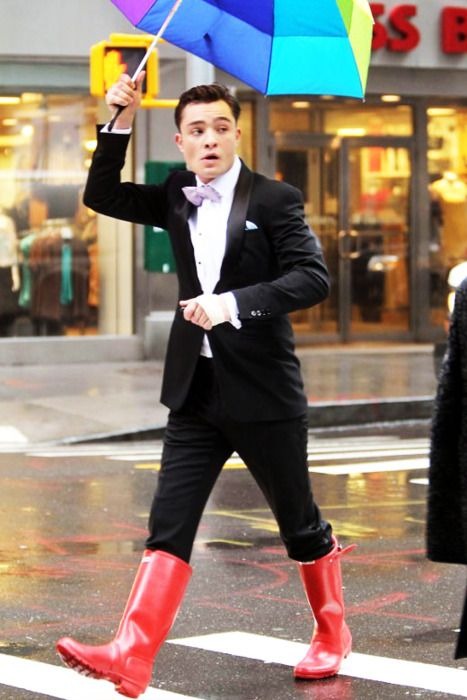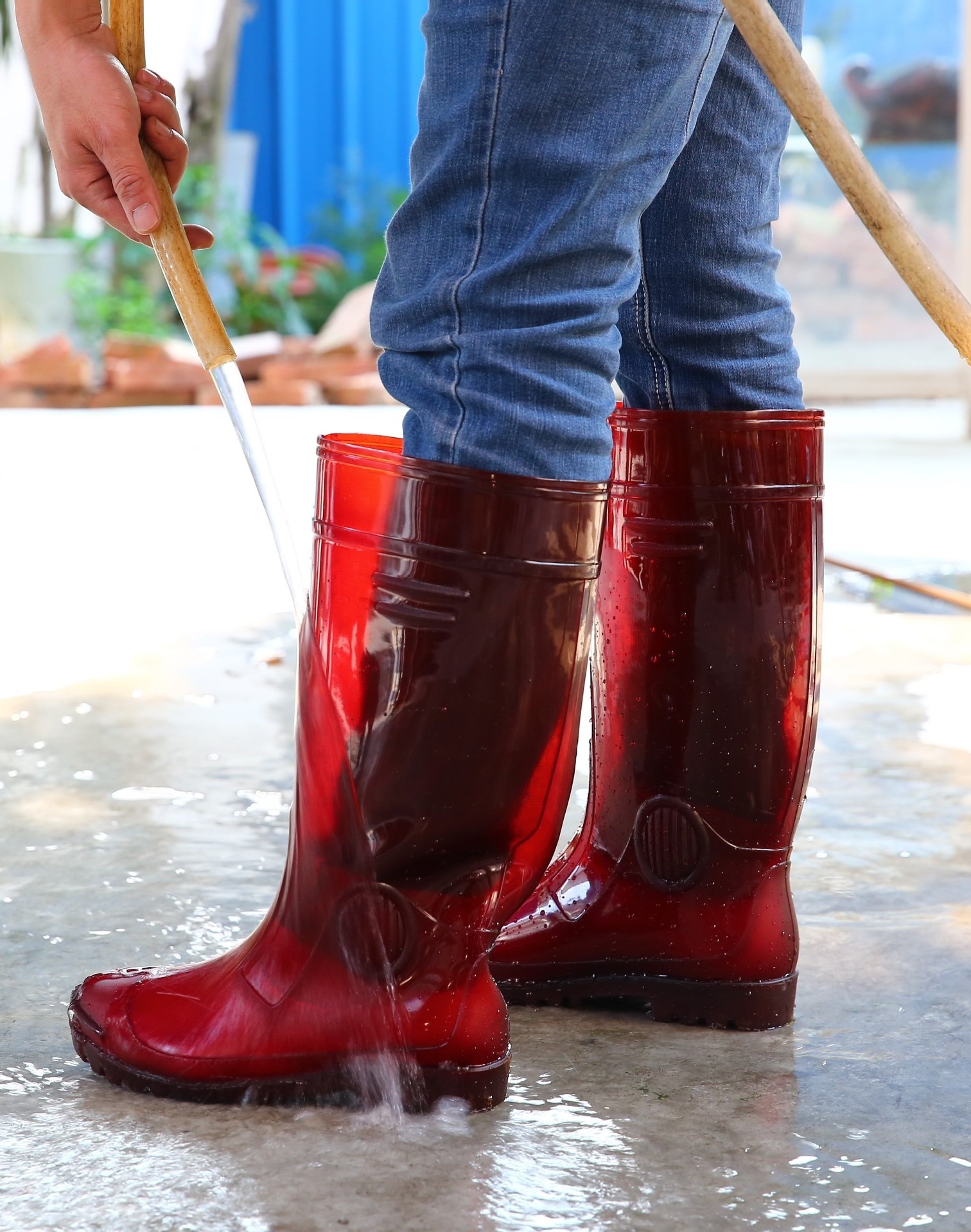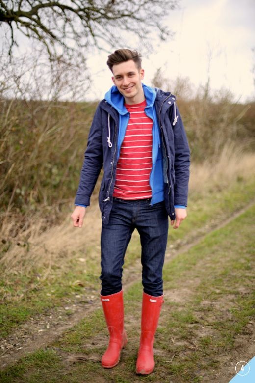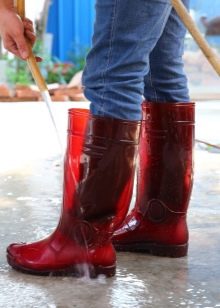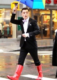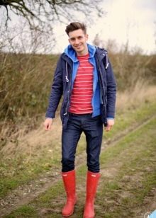 In recent years, you can find rubber boots in bright red color in stores. Of course, not every man is ready to purchase such an accessory for himself, which is why stylists suggest combining such shoes with sportswear. Do not be afraid of this contrasting shade - such shoes can become a truly bright and practical thing in your wardrobe.