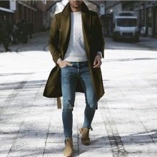 Combinations in which a trench coat, a parka, a pea coat, a leather jacket such as a leather jacket, a bomber jacket or a bologna vest are chosen look good. Quite good tandems are obtained with the use of fashionable denim jackets. Among the listed items, simple jackets are not observed. This is due to the fact that such outerwear items are discordant with chelsea boots and do not look the best together.