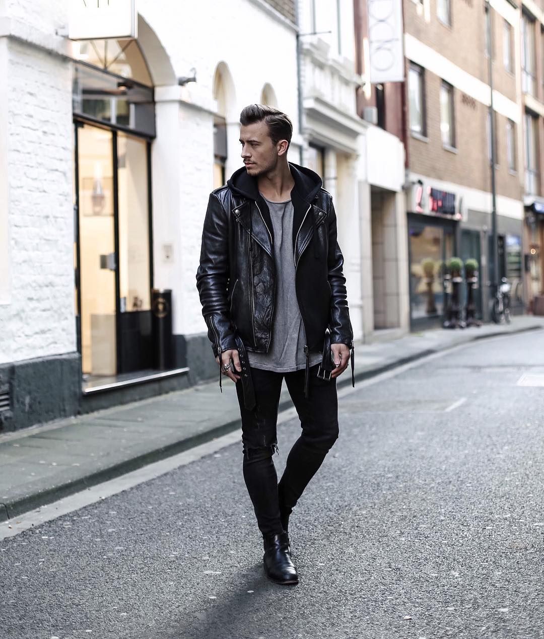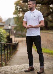 Looks stylish and modern in which there are narrow-cut jeans and fashionable men's boots.
