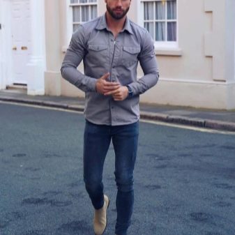 - Strict "office" long-sleeved shirts are combined very well with Chelsea. Such things, restrained in execution, resonate perfectly with solid shoes.