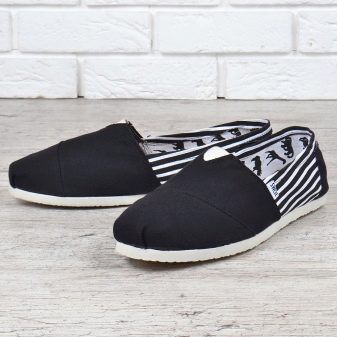 Espadrilles resemble comfortable slippers, they have a rope sole and a natural textile base material. Sandals have a light sole, but unlike the previous version, they are not made from textiles. Slip-ons do not have lacing, fasteners, they do not look like moccasins. These are shoes with a rubber sole without a heel and a laconic upper. Sleepers are velvety monogrammed shoes.