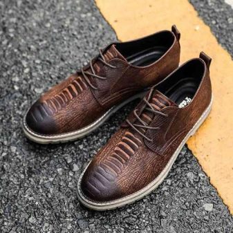 These shoes are nothing more than shoes with sidewalls sewn over the main front with a tongue. They have laces, a traditional cut and are suitable for men with high leg lifts. Depending on the model, they look good in classic and informal styles. They can be decorated with perforations.
