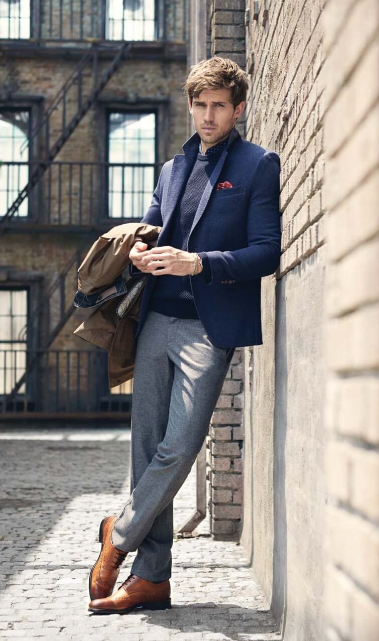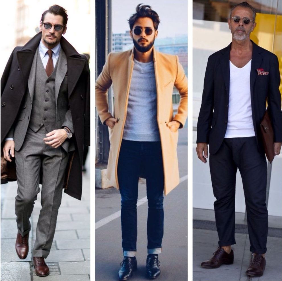 - Brogues are ideal for tweed and corduroy suits, leather jackets, parkas, sports-cut jackets.