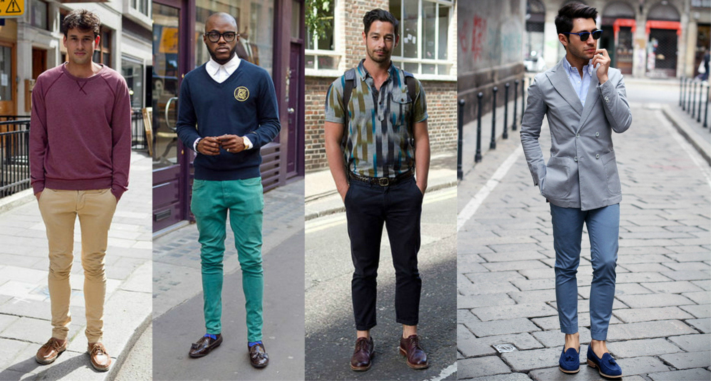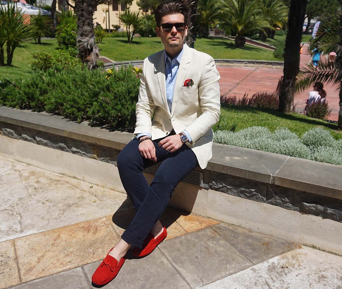 - Loafers are a great addition to a business casual or informal set. It is better to wear them with tight trousers and jeans, an informal top.