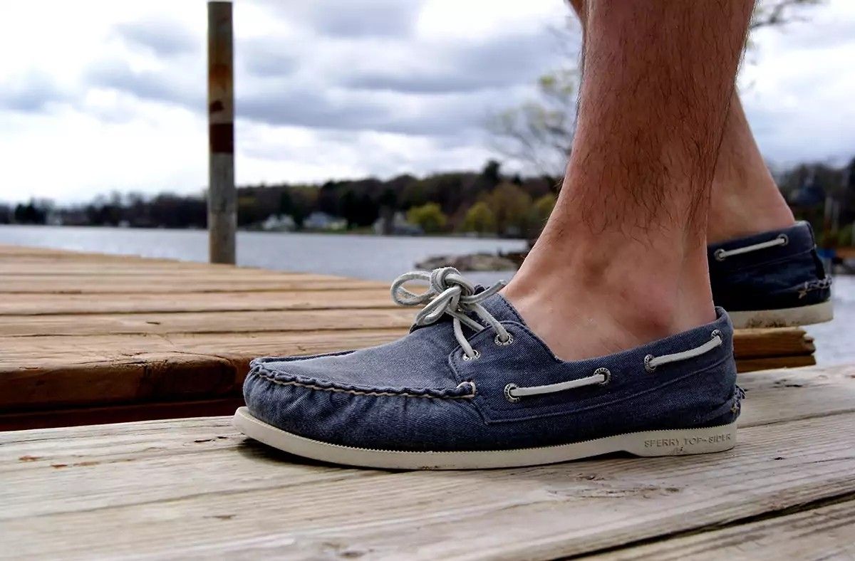 - Topsiders are worn without socks (on bare feet), wearing casual clothing underneath.