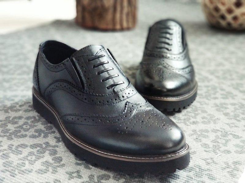 In the classic form, these are shoes with perforations along the side seams. Semi brogue - semi-brogue. They have a perforated part of the sock. Quarter varieties have punctures along the stitches in the nose, back, and also on the tibia. Models of the fourth type (wingtip or full brogue) are perforated on the sides and have a w-shaped perforated escutcheon that connects to the top of the main body.
