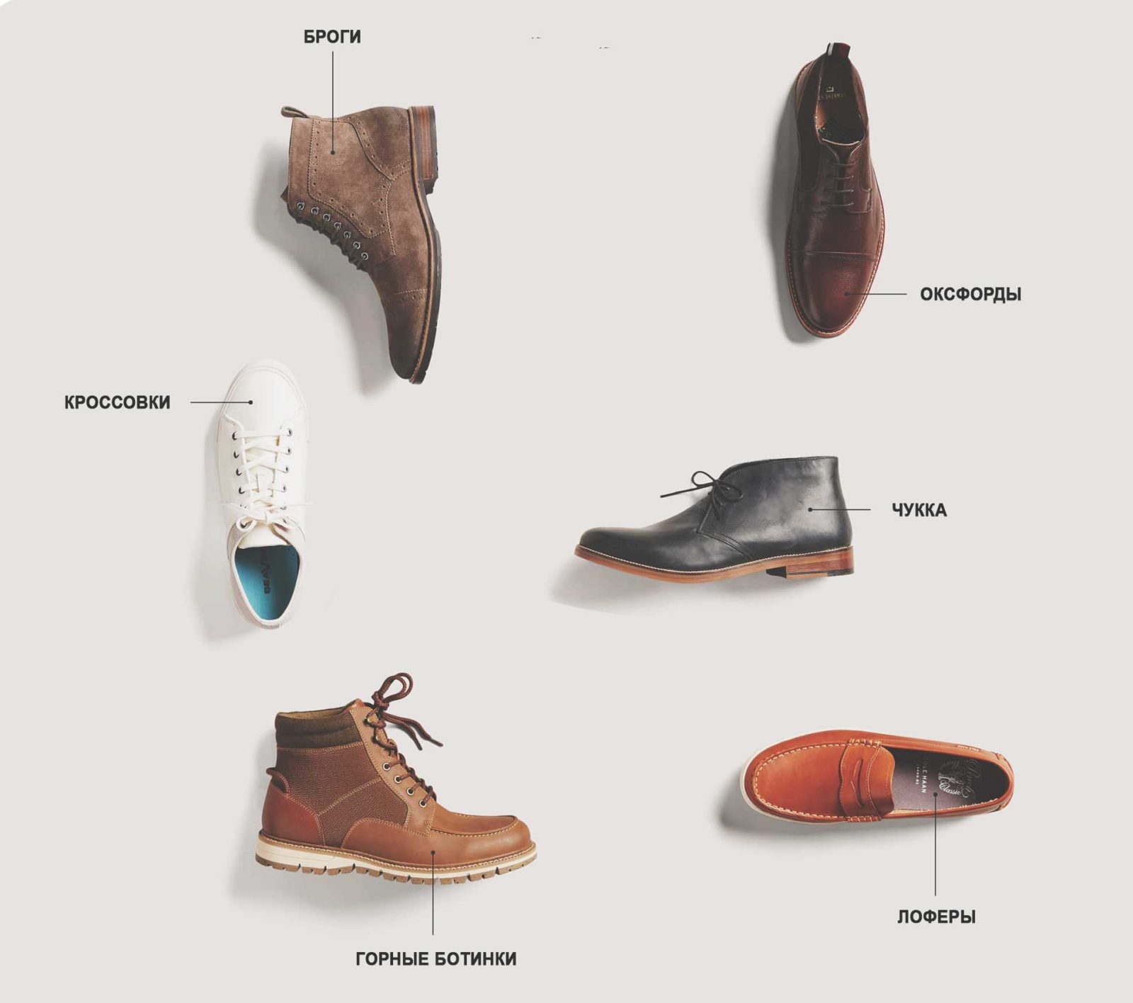 Men's footwear: types, colors and manufacturers