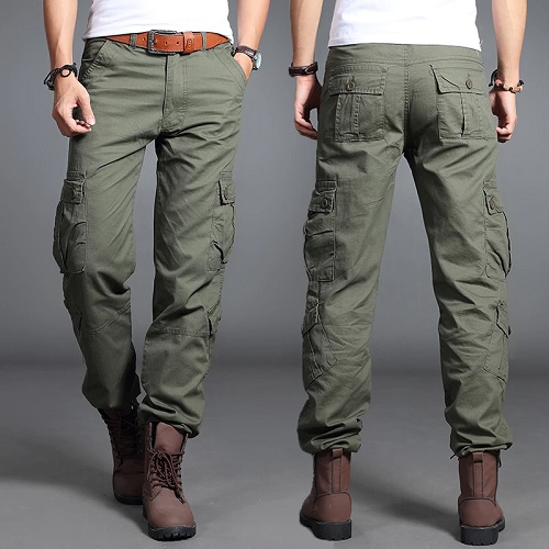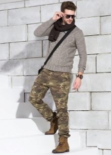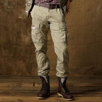 - Military. Military trousers are very popular among men. Such things have become popular since the days of the hippies. Military pants are usually done in green, hakki, sand, grayish shades. Complemented with a large number of patch pockets.
