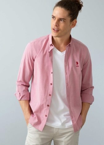 - Pink. Similar shades on shirts, T-shirts, shorts, polos and even jackets perfectly complement men's looks, designed in light and pastel colors. Pink clothes look especially cool in combination with summer clothes.