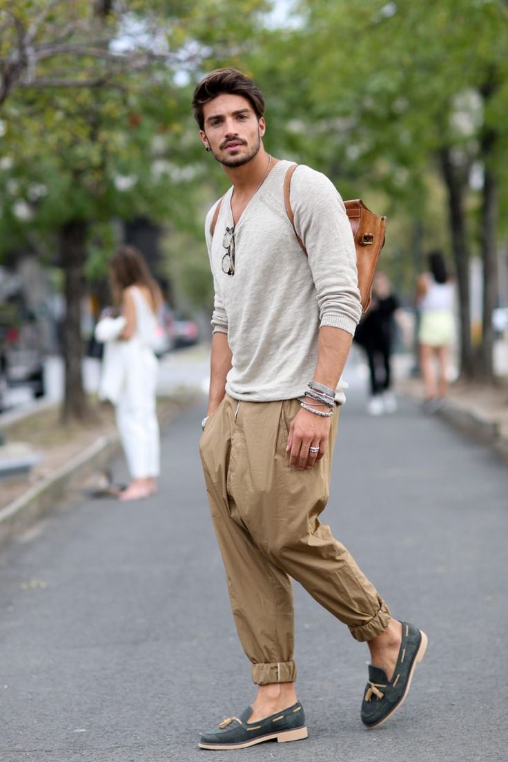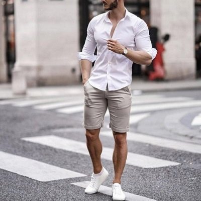 - Free. The most successful style for warm seasons. So, on men, loose linen shorts or shirts look very good, in which they are very comfortable and fresh in summer.