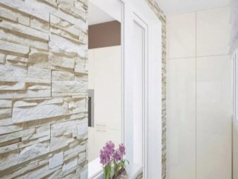 The next design option is tiles imitating brick or decorative stone. This finish has high aesthetic and operational qualities. It is perfect for both cold and warm glazing.