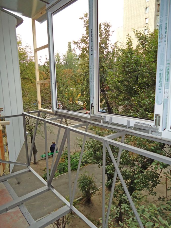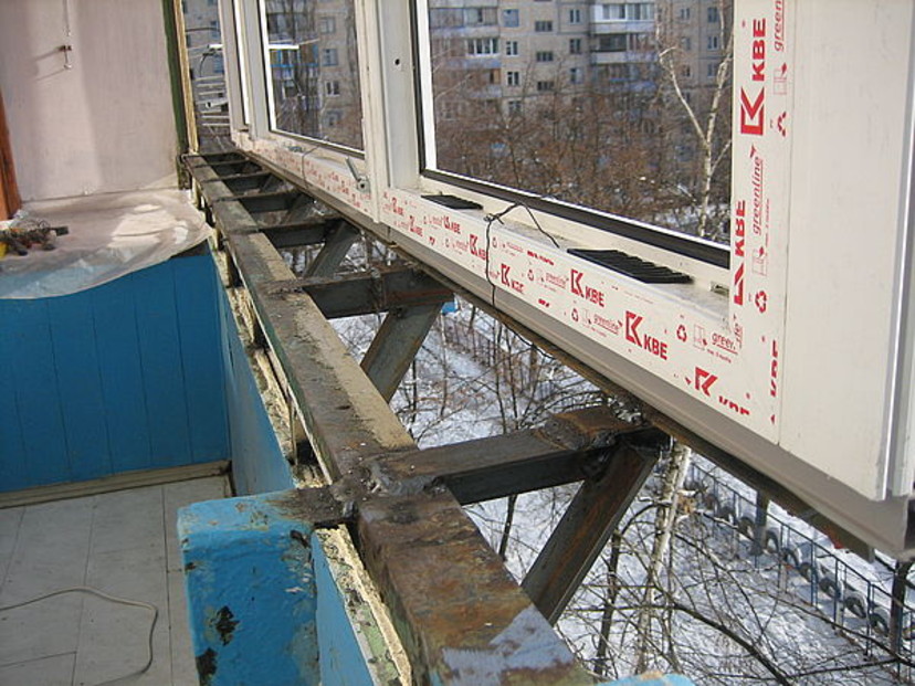 - The first step is to install the outrigger brackets. Their length can vary from 25 to 40 centimeters.They are attached to the outside of a loggia or balcony fence.