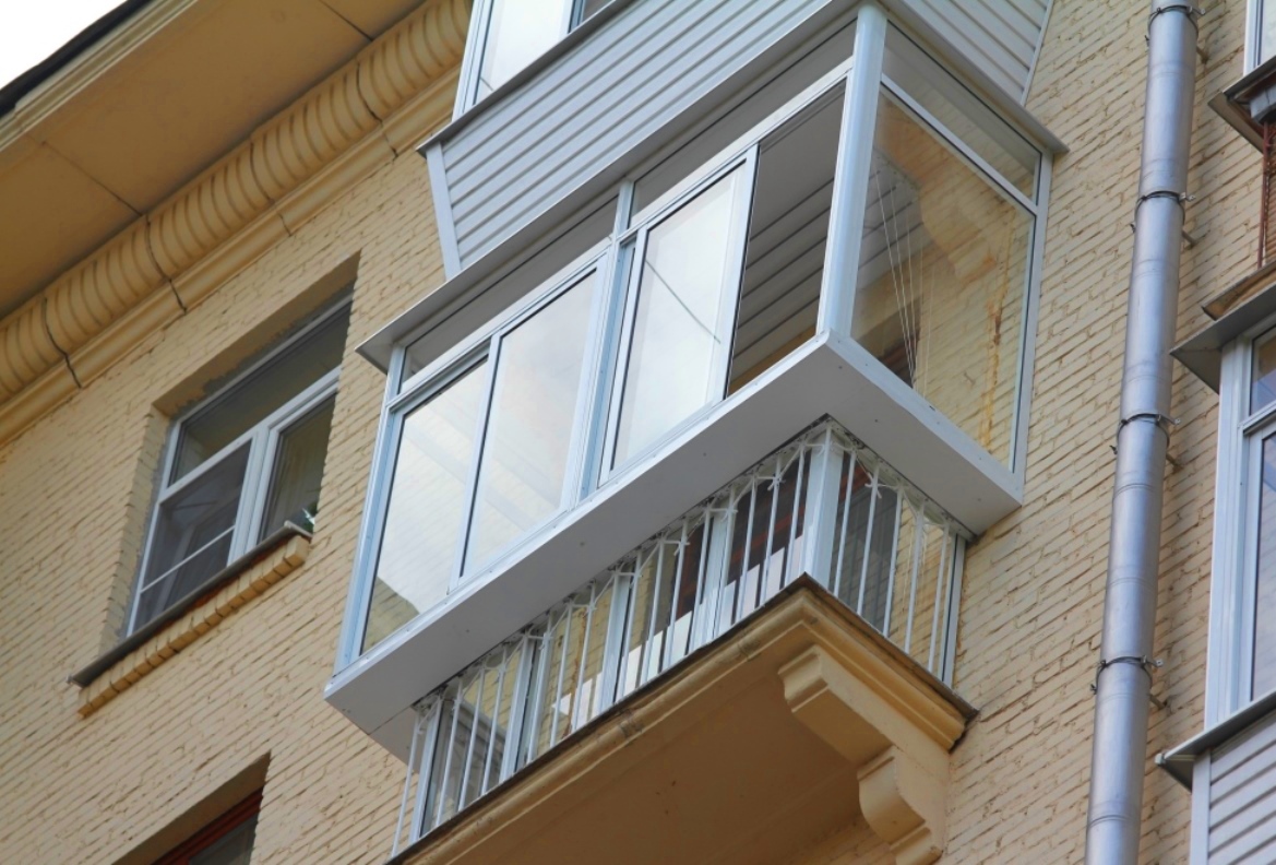 The second option, which is most often chosen for small and narrow rooms, allows you to slightly expand the space. The takeaway glazing is perfect for houses with old layouts. The main difference between this method and the above is the construction of a frame, which is located outside the balcony.