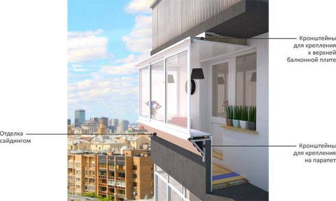 - windows are mounted directly on the balcony parapet; installation on beams that were securely fixed in advance is also possible;
