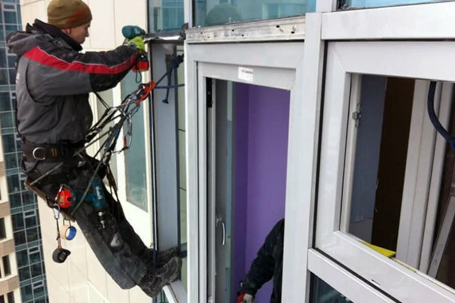 - At the end, the installation of the profile and other adjustment work are carried out. Finishing is also carried out and sashes are hung.