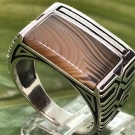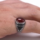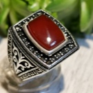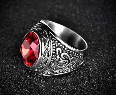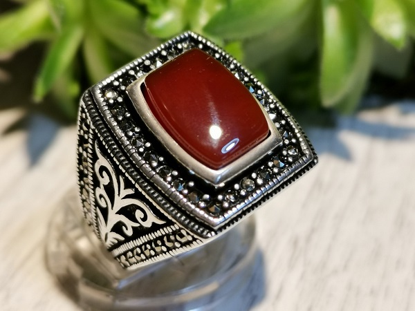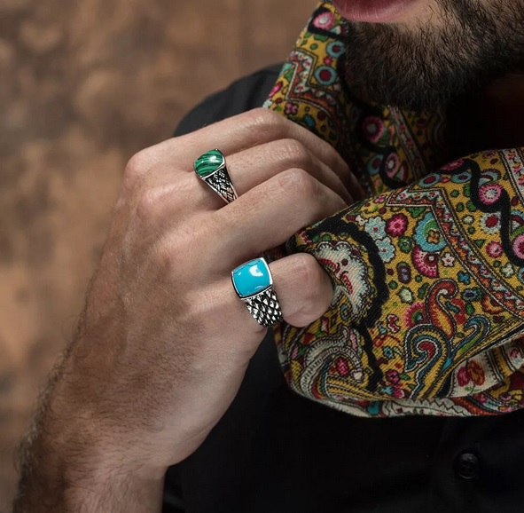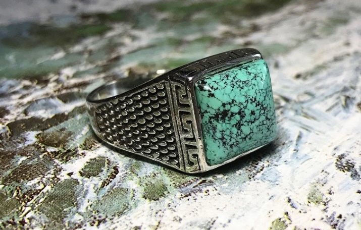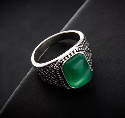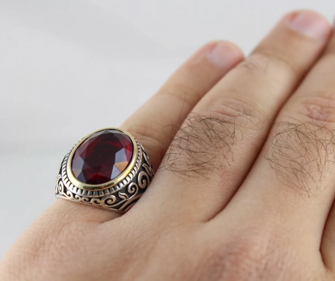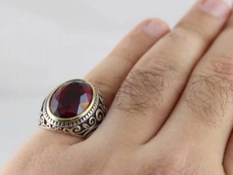 However, on sale you can also find quieter options for filling men's silver rings. For example, with blue aquamarine, turquoise, carnelian, jade, green malachite and tourmaline. Quite often, men's rings are decorated pomegranate. This stone embodies courage, courage, resilience and self-confidence.