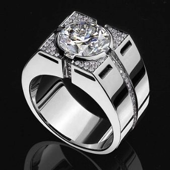 Transparent or light mineral, distinguished by presentability and high cost... A diamond embedded in the base of the jewelry is the pinnacle of the art of jewelry. Representatives of the stronger sex who have a high financial status prefer to wear such rings.