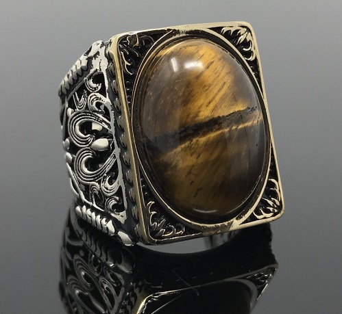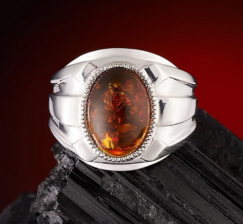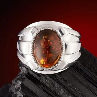 Amber is the most common stone with a variety of colors and transparency. For jewelry, yellow and orange varieties are often used. Men's rings decorated with amber are valued not only for their beauty, but also for healing properties. Representatives of traditional medicine claim that amber can relieve headaches, get rid of viral infections, and improve metabolism in the body. With its help, you can fight skin diseases, stimulate the nervous system. It eliminates various inflammations and restores strength.
