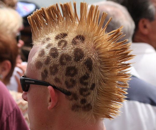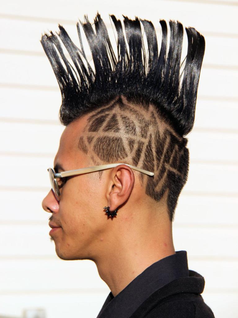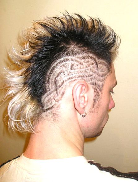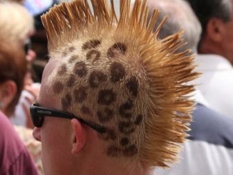 - Iroquois - a hairstyle that is creative in itself. If the temples and the back of the head are additionally decorated with patterns, and the “comb” itself is painted in a bright color, then the increased attention to the person cannot be avoided.