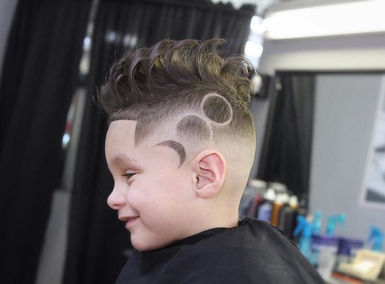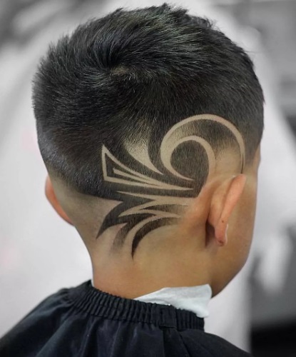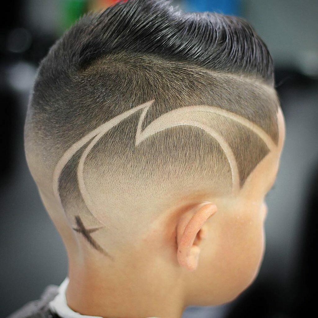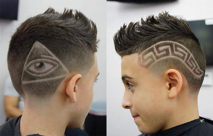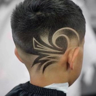 - Shaved drawings on young men look quite stylish. This hairstyle will guarantee that all the girls in the yard will like the young man.
