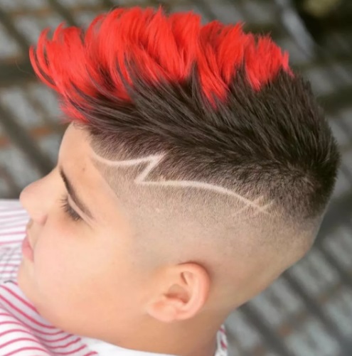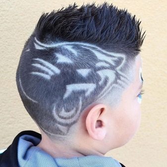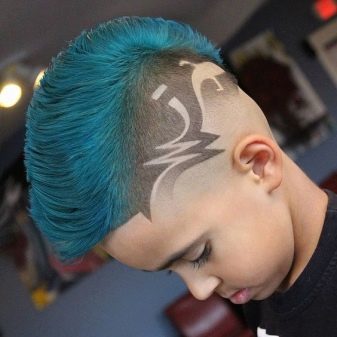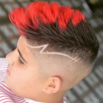 - For adolescents and adolescents it is recommended to show imagination - you can not only shave the original patterns on the head, but also dye your hair in bright "acid" colors.