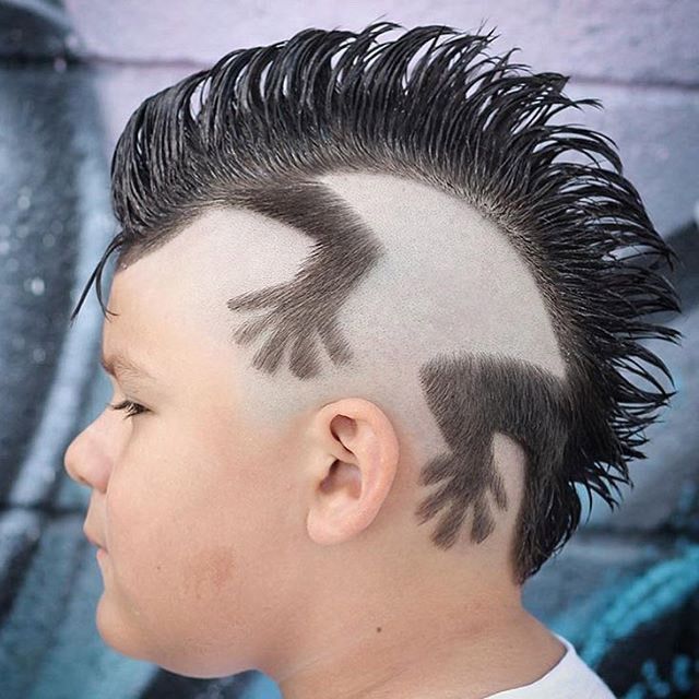 - Perhaps one of the most popular patterned 3D haircuts is a lizard "sitting" on its head. Not everyone dares to do this, but such a hairstyle looks quite interesting.