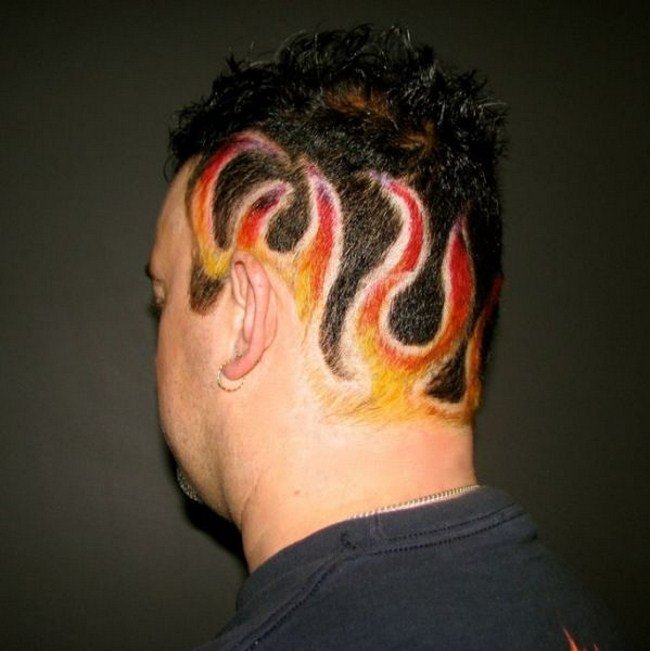 - Exotic. This type of drawing includes a haircut in the form of a lizard, hieroglyph, tongues of flame. Looks spectacular with appropriate staining.