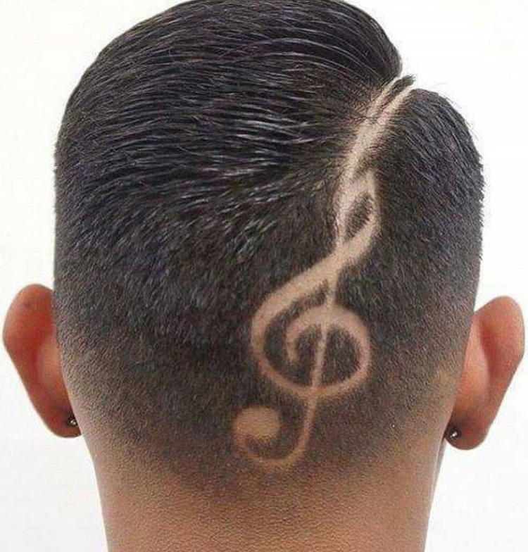- A treble clef cut at the back of the head looks beautiful, turning into an asymmetrical side parting. If a person is related to the world of music, then it is worth taking this technique into service.