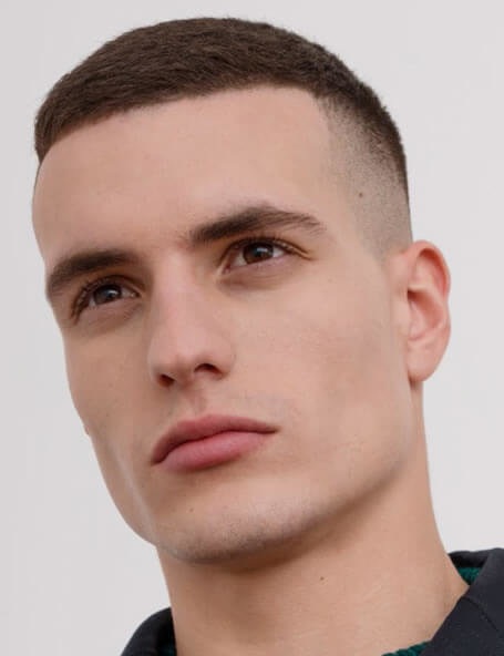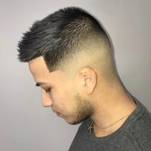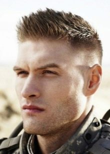 Military type haircuts appeared at the beginning of the twentieth century in America. Initially, it was the military who wore them, but over time, such hairstyles have spread among ordinary men. Outwardly, military-type hairstyles are very reminiscent of boxing, but in the latter, whiskey is cut with scissors, but in military, whiskey is shaved off with a zero nozzle. Like other sports men's haircuts, a military haircut does not need painstaking care and does not require daily styling. Some men use styling gel to give their military curls a natural shine.