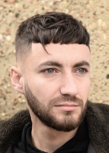 Among sports haircuts for short curls, the Caesar hairstyle occupies a special place - this is one of the trendy men's hairstyles in the current season. Caesar is characterized by ultra-short temples, slightly elongated hair at the crown and a well-defined bangs on the forehead. This hairstyle looks perfect on men with oval and square faces. - she emphasizes the strong-willed chin, beautiful cheekbones and strongly emphasizes the eyes. Caesar does not require special styling, but it needs regular adjustments to the bangs line.