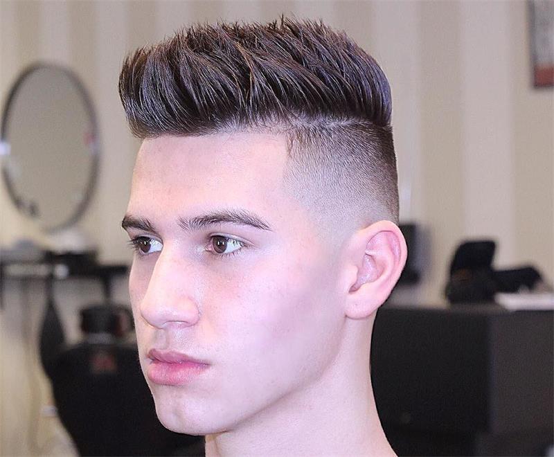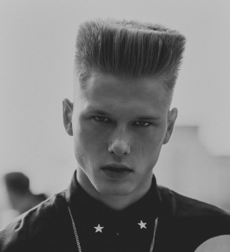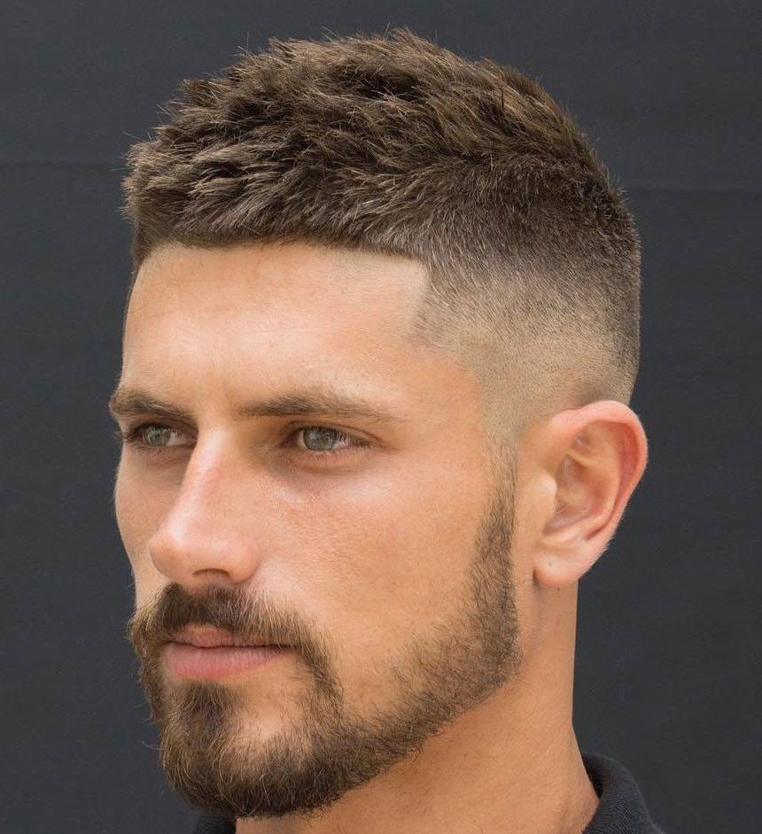 This is perhaps the most controversial men's sports haircut. The beaver is characterized by ultra-short sides and the back of the head, as well as voluminous and raised curls on the crown, during the laying of which a semblance of a flat platform is formed on the crown. Like all sports hairstyles, the beaver completely opens the face and can visually stretch it, which will definitely be useful for men with round and triangular faces.