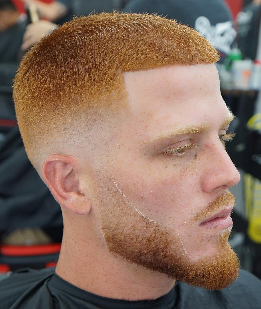 As for the shade of the hair, sports haircuts can be perfectly combined with both light and dark hair.The only difference is a sharp transition from hair length between shaved temples and an elongated crown (as in a Caesar hairstyle) looks more impressive with dark or black hair.