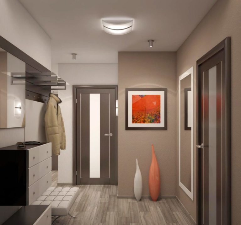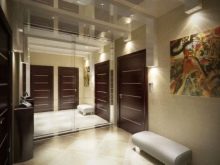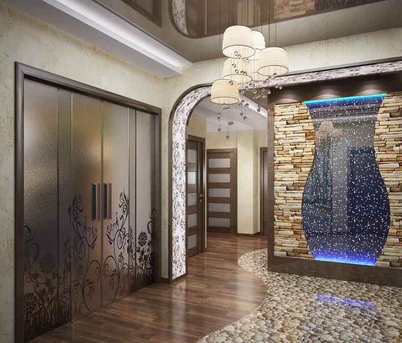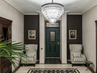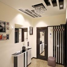 Depending on the design, panels, paintings, framed photos, as well as wall and ceiling lamps can become decorative elements of the hallway. Also, accents can be engraved mirrors, figurines, potted plants, floor vases.
