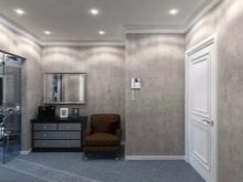 Liquid wallpaper in the hallway is used less often, since such a cladding has to be sanded from above and covered with a protective varnish. In this case, the finish is not afraid of moisture and can decorate the walls for a long time.