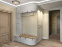 Banquettes can be decorated with decorative mattresses or small pillows. If there are windows in the hallway, they are decorated with curtains. The design of the curtains depends on the features of the windows and the style taken as a basis.