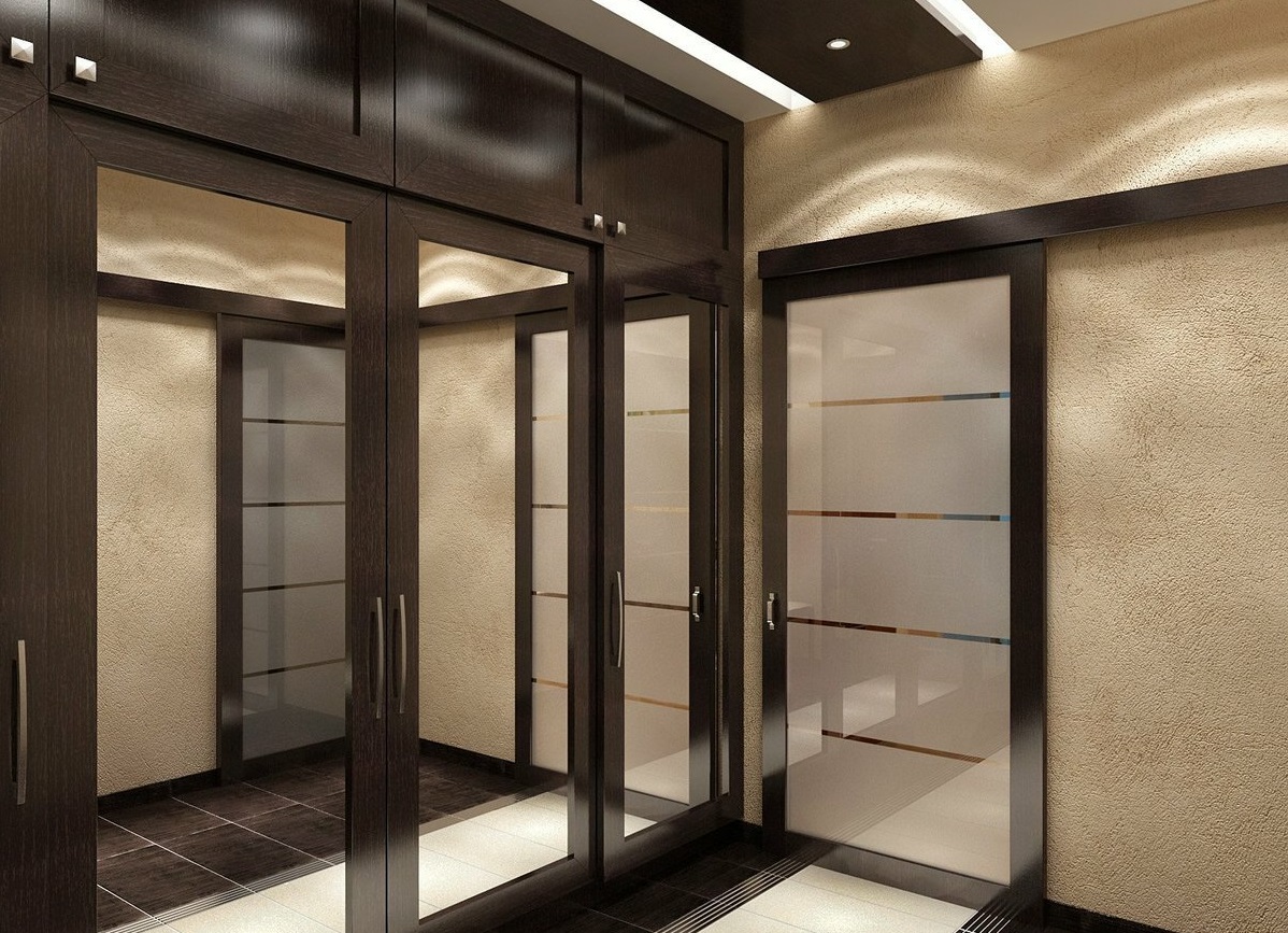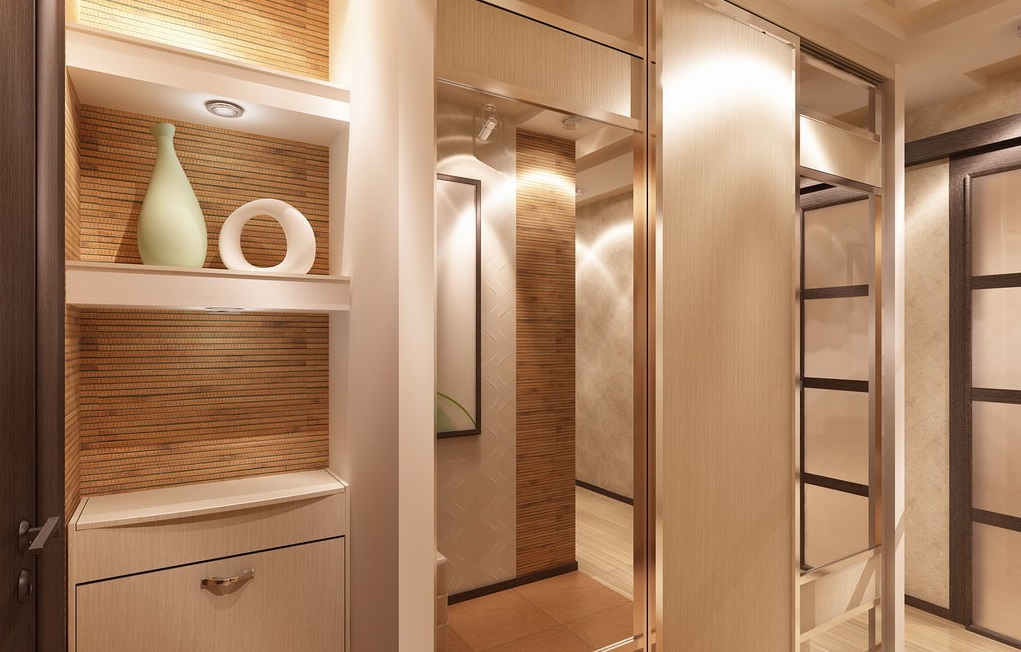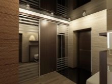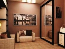 - Using built-in furniture with a mirrored facade - a way to visually expand the space.