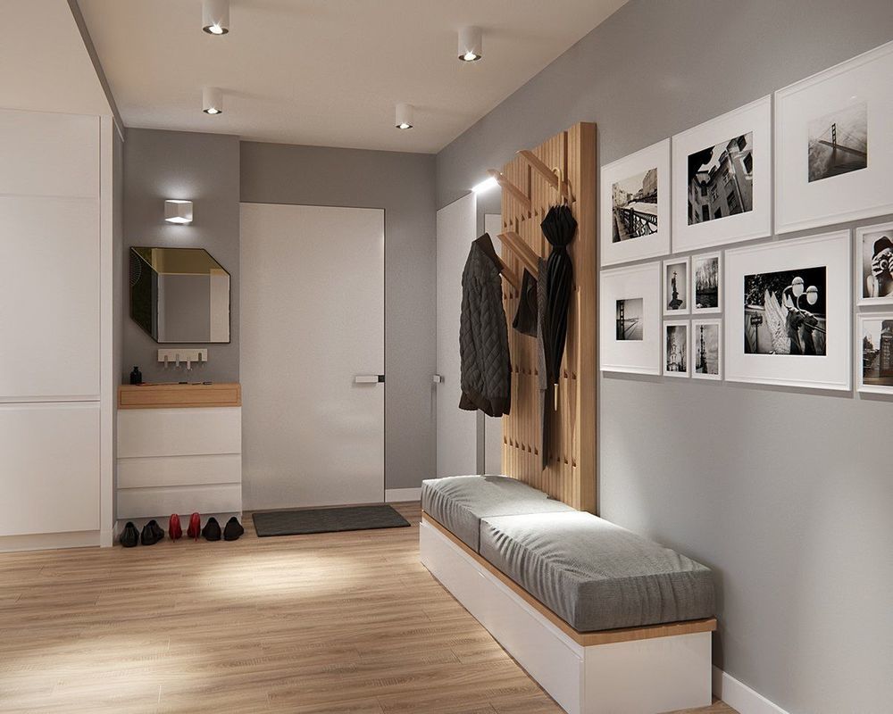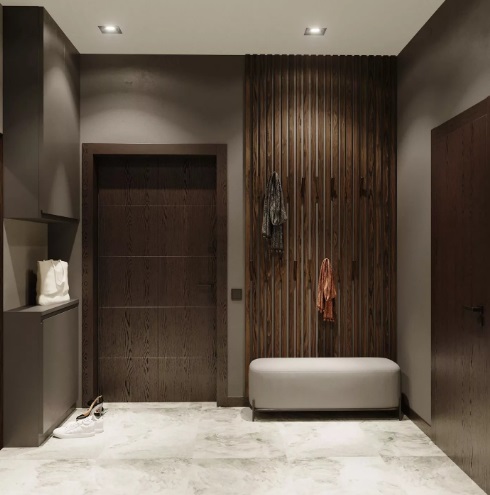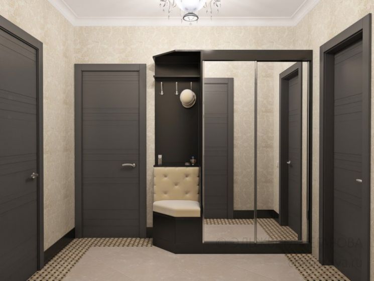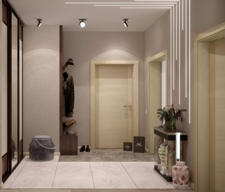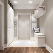 The ideal color scheme is a hallway in light colors. The focus of fashion trends is neutral and natural shades. Combinations of white with gray, graphite, black are popular. Beige, gray-beige, coffee, chocolate, sand colors are in fashion.