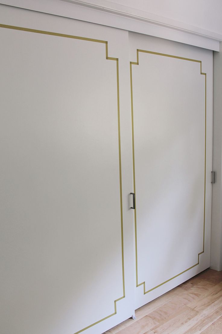 - Changing spatial perspective due to the built-in wardrobe and the texture of the ceiling material.
