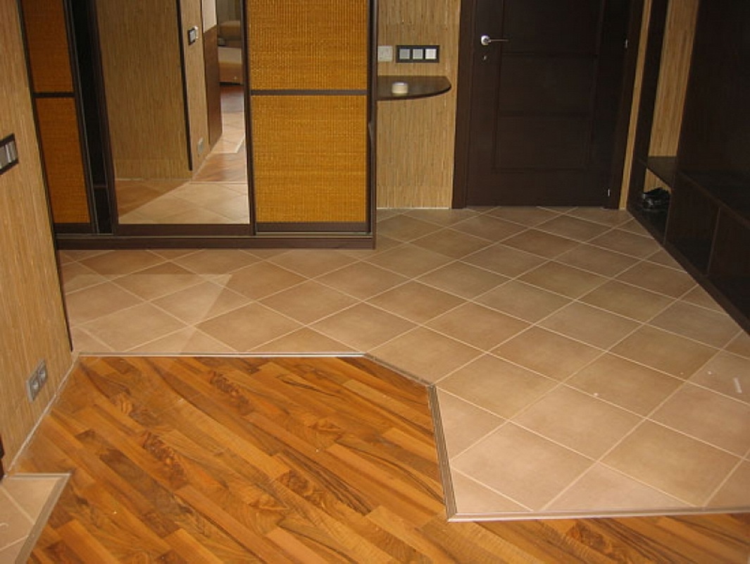 The type of flooring can be combined. Due to the combination of materials contrasting in texture and color, it is possible to zone the space. For example, you can separate the entrance area to a dwelling by choosing a material that is more resistant to abrasion and dirt.