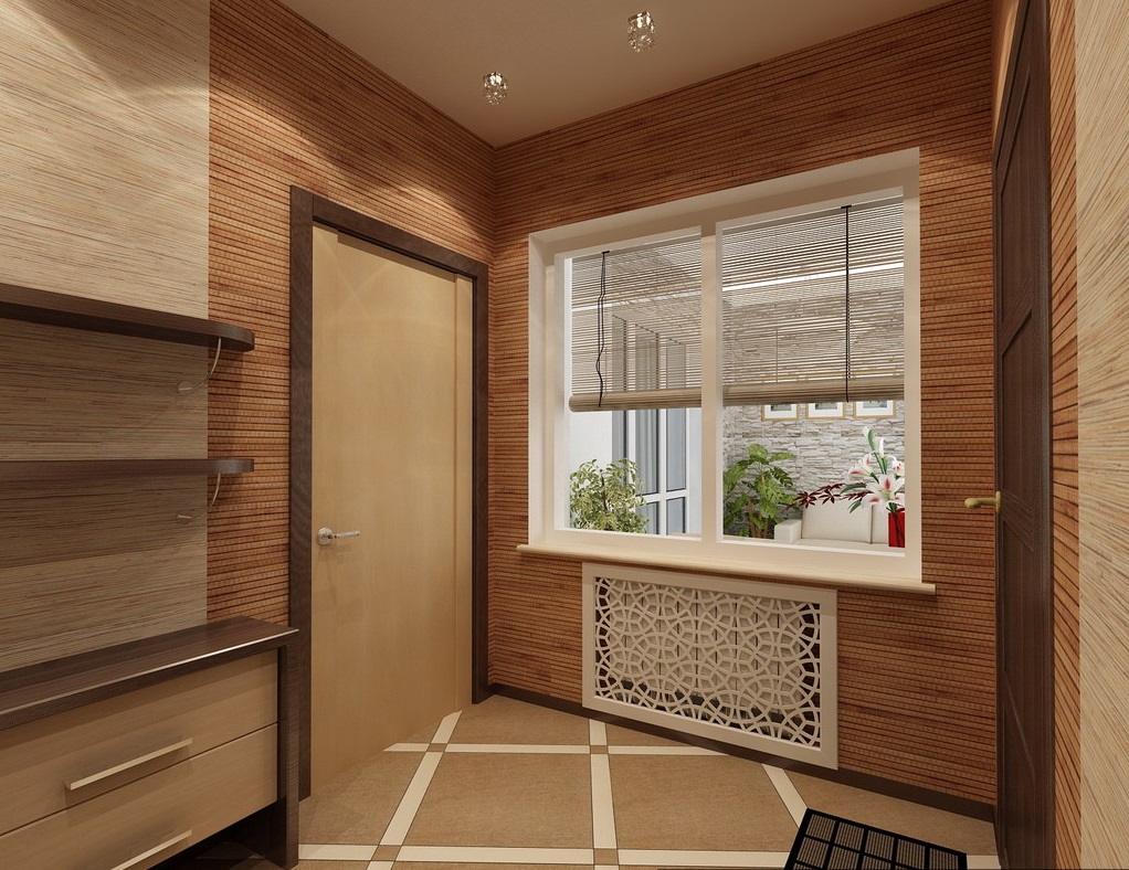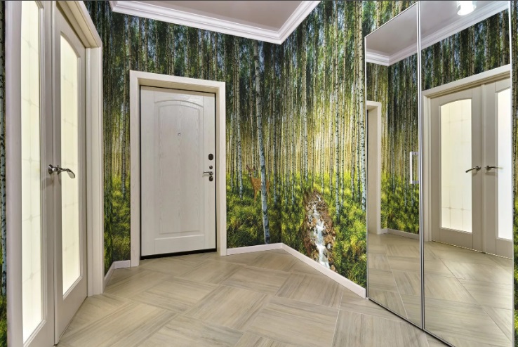 A large ornament on the walls, coupled with furniture, will overload the interior, make it heavy and tasteless. In some cases, you can decorate the entrance room with a photo-printed coating. However, in small hallways, such a design will not be clearly visible.