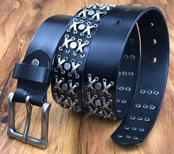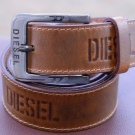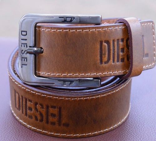 - Diesel. The company produces jeans and related accessories. Men's belts are made of leather and look quite brutal and unusual. They are decorated with rivets, skulls, unusual plaques.