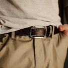 - Casual. In everyday life, men wear jeans, comfortable trousers and other clothes that will look a little strange with a classic belt. And not everyone at work has a dress code that requires a strict appearance. That is why every man's wardrobe must have at least one casual belt. Such an accessory can be distinguished by a large convenient automatic or regular buckle, in a bolder color.